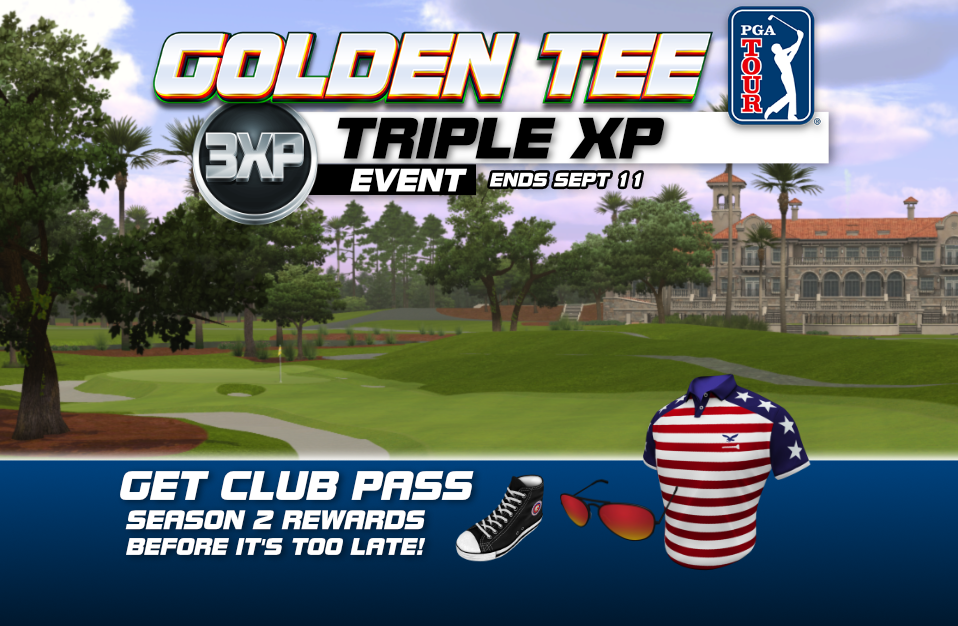 Now through September 11th, Golden Tee PGA TOUR players will earn TRIPLE XP!