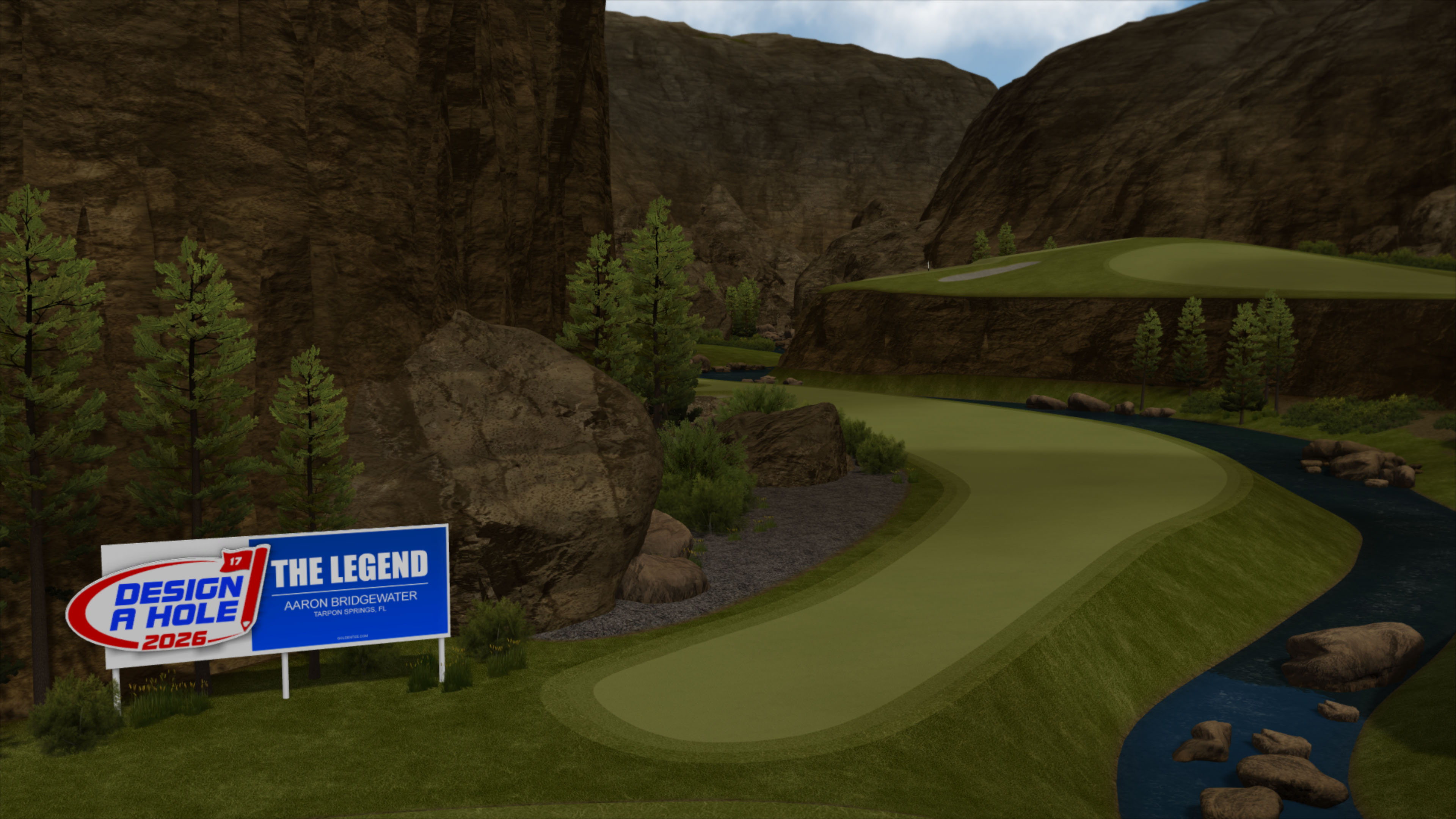 Bridgewater was named the winner of the 2026 Design-a-Hole contest, our annual contest that lets players submit their dream creations for a chance to appear in the next release of the game. His winning design, fittingly named The Legend, will live on as Hole 16 of Gunnison Gap.