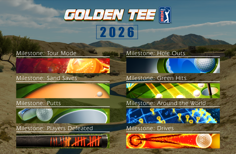 When Golden Tee PGA Tour 2026 arrives on Monday, September 29th the new milestone banners will be up grabs! In the PGA Tour 2026 update there will be a variety of new milestone banners to earn. These banners will offer milestones for Tour Mode, Longest Drives, Players Defeated, Hole Outs and more.