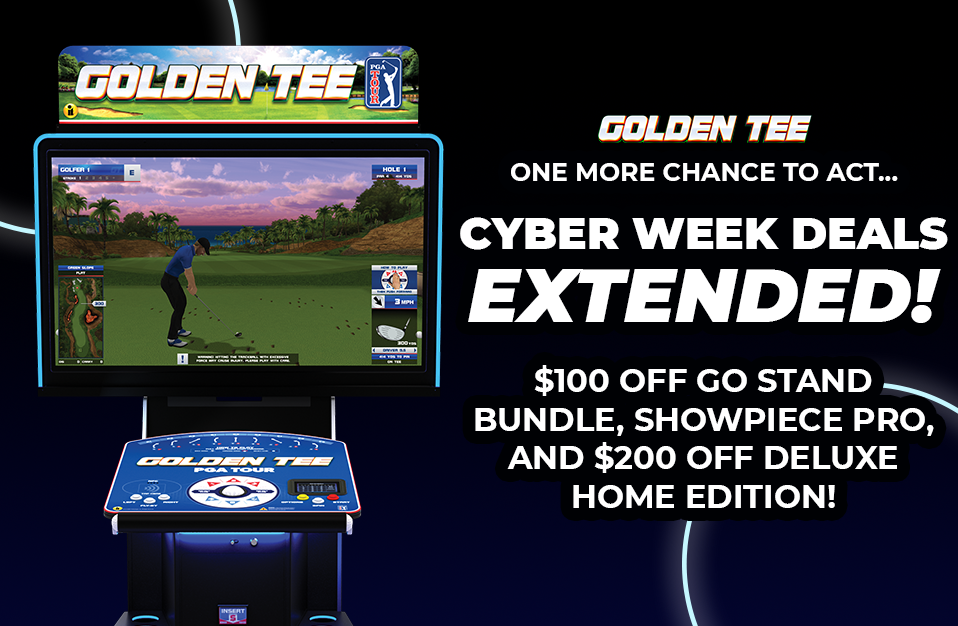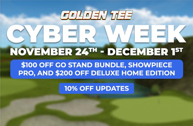 Cyber Week is here and the Golden Tee team is kicking things off with a handful of solid deals for players and fans. Whether someone is looking to bring Golden Tee home for the first time or wants to upgrade what they already have, this week is a good time to jump in. Golden Tee’s cyber week will run from November 24th. – December 1st.