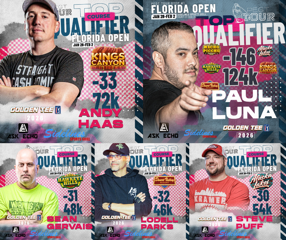 The National Golden Tee Tour held its Florida Open at Sidelines Sports Grill in St. Cloud from January 29th to February 1st, 2026. Sidelines is a veteran in venues to host Golden Tee tournaments and their staff showed us why once again! This stop featured a mix of Golden Tee veterans, new players, and young guns to watch out for!
